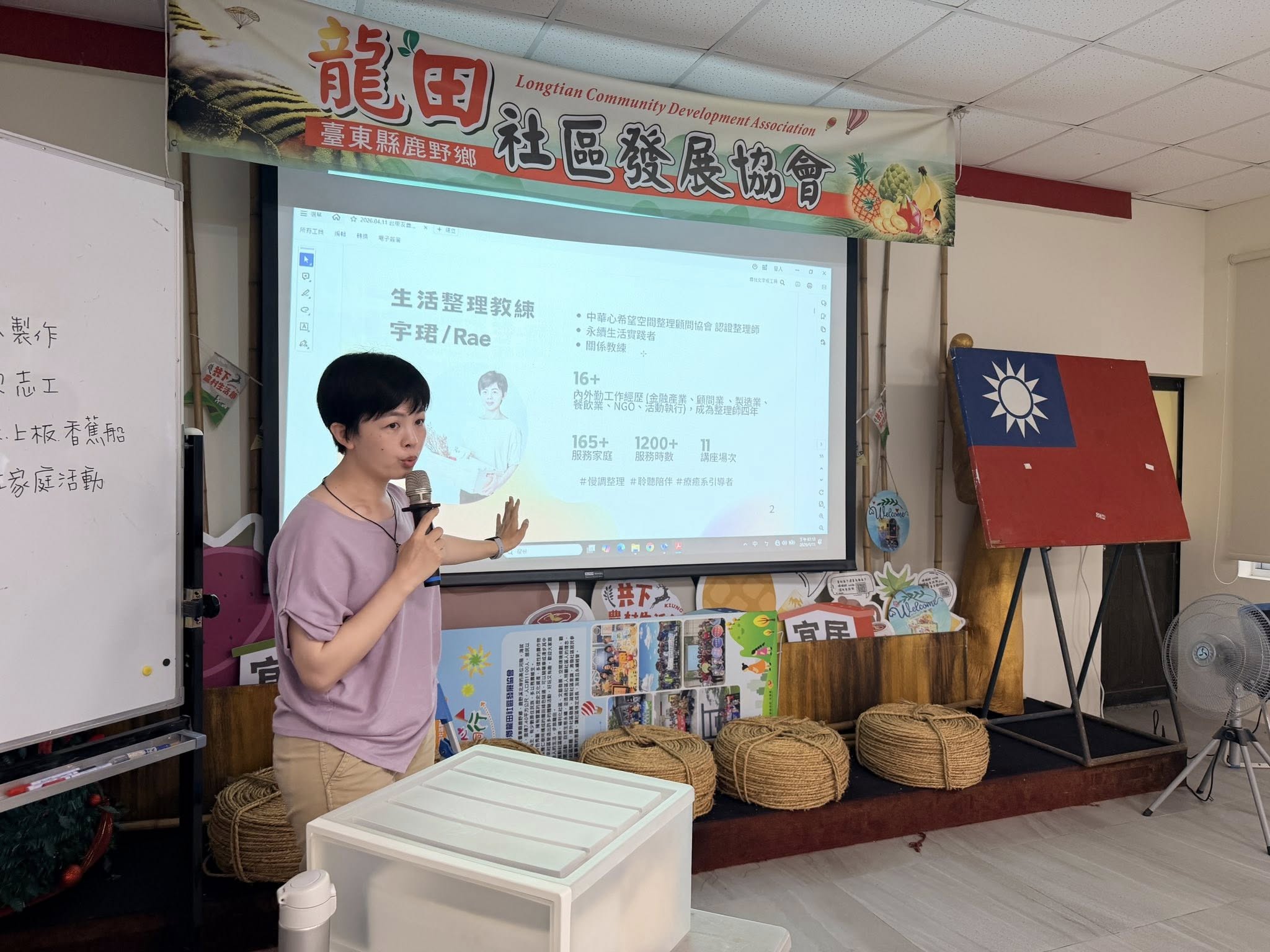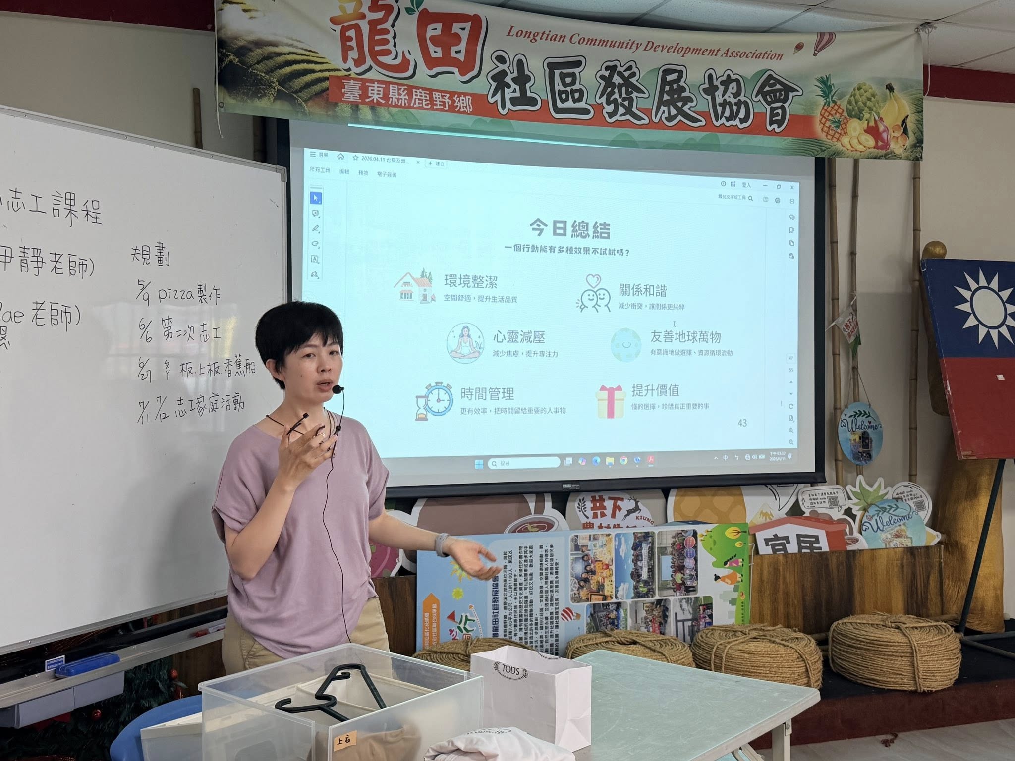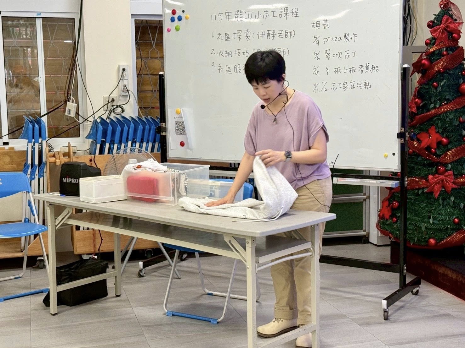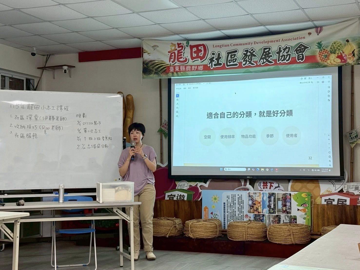 由在地國中生組成的小志工們,踏出屬於他們的第一步,在 方伊靜老師的帶領下認識龍田社區, Rae老師教導孩子學習收納技巧、整理生活空間,到實際走入社區,參與環境整理與關懷長者,孩子們不只是「學」,更用雙手去「做」。
