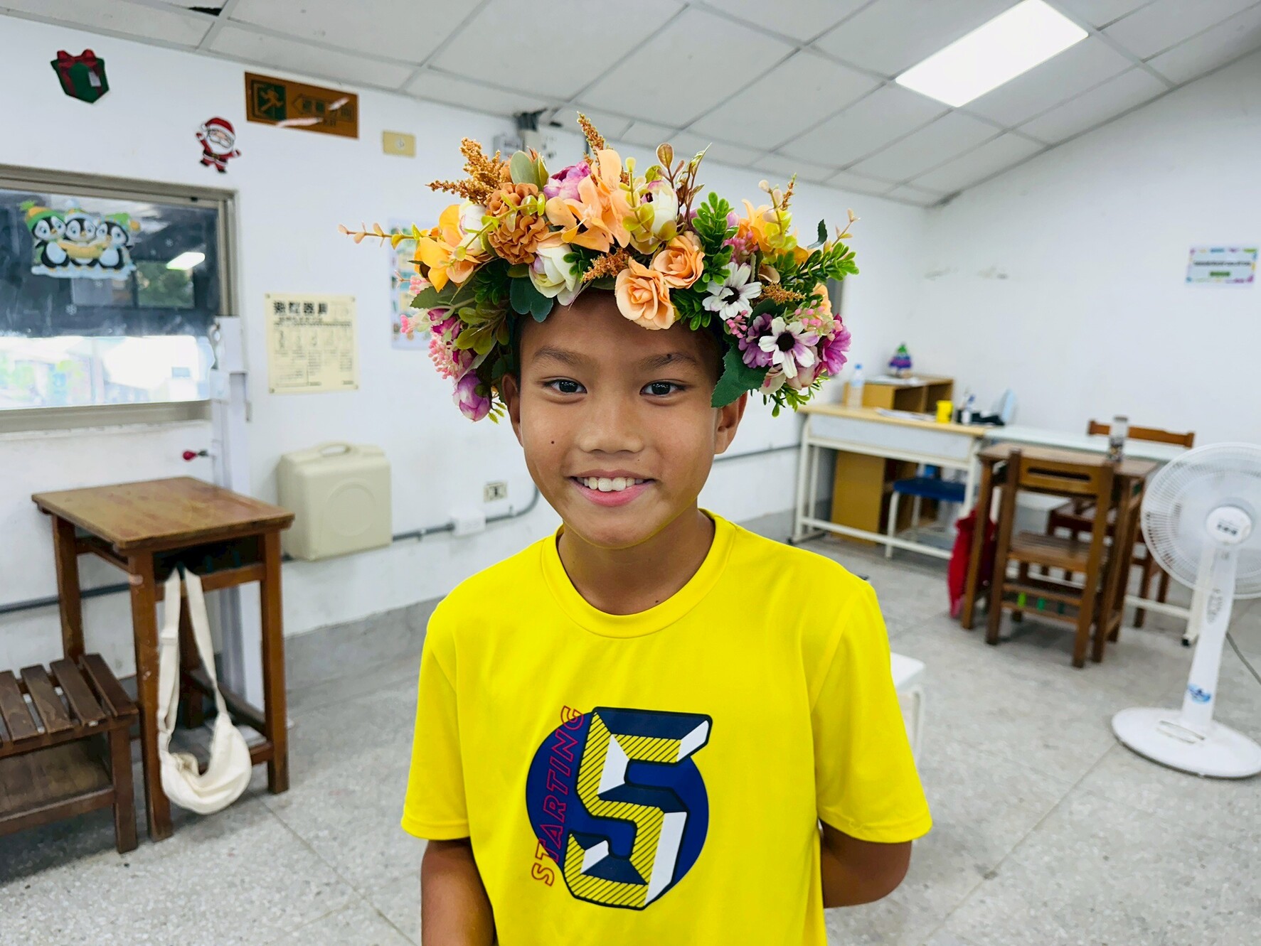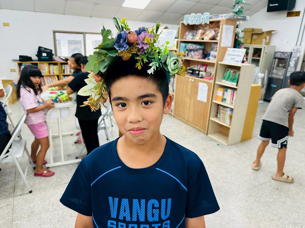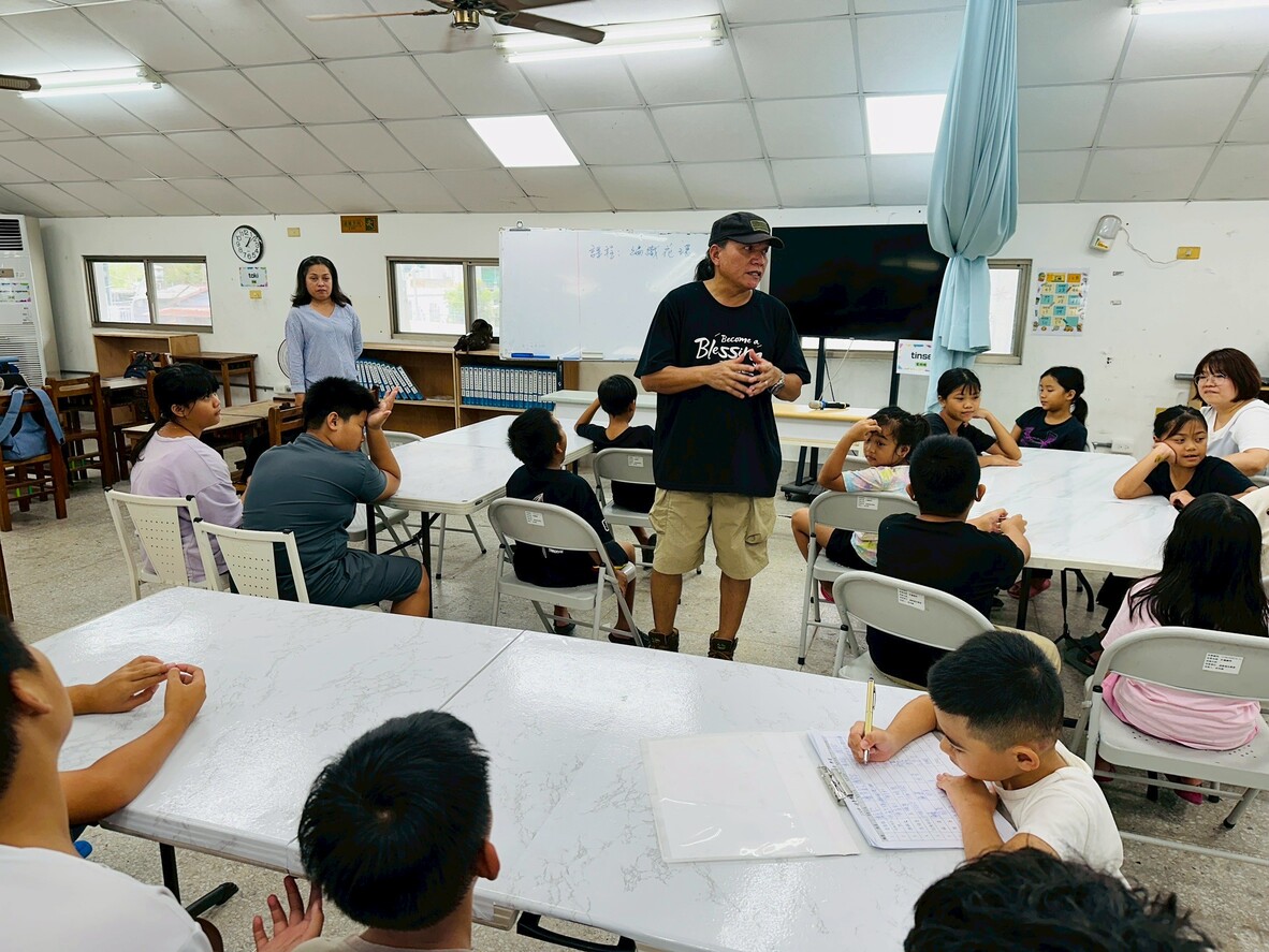 課程一開始,老師先和孩子們分享頭花在東魯凱文化中的意義,並拋出問題:「頭花的東魯凱語怎麼說?」雖然大家一開始都不知道,但後來有人成功答對,讓課堂瞬間熱鬧起來