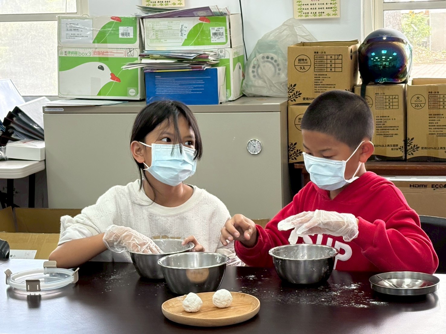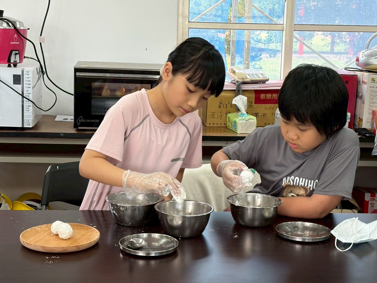 今天的烹飪課,由 簡秀倫 老師帶領中年級的孩子們,一起動手製作 滾元宵 和 酥皮元宵。