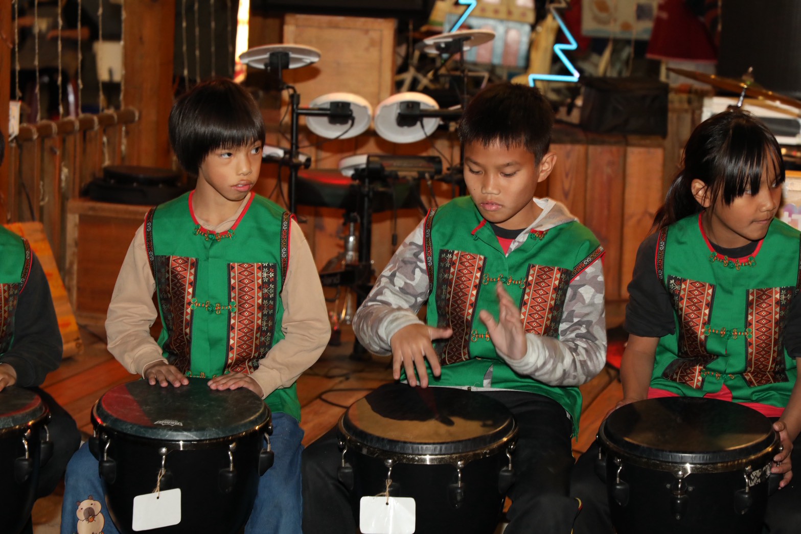 孩子們一到現場,眼裡就閃爍著興奮的光芒 🤩,看到其他樂手前輩的演出更是大開眼界。輪到孩子們上場時,那股專注與爆發力簡直驚艷全場!鼓聲一下,不僅震動了空氣,也抓住了所有觀眾的心,台下聽得如癡如醉 ❤️
