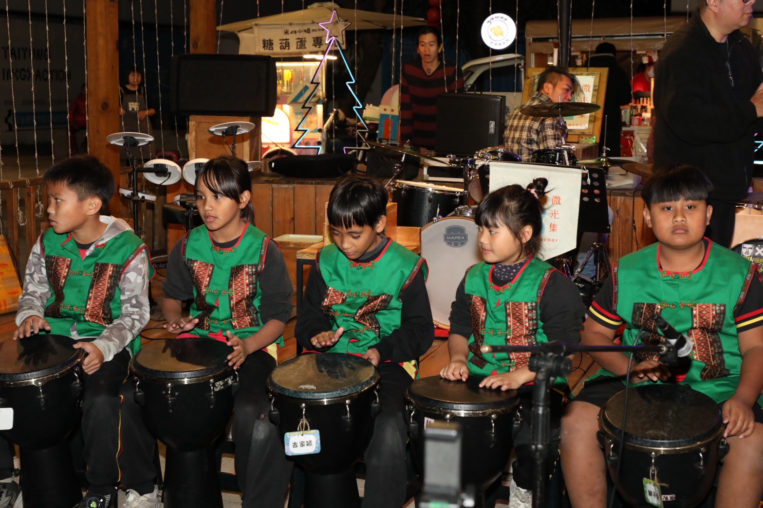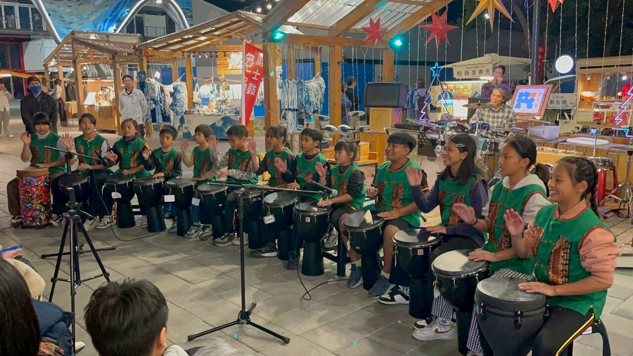 就在 1/23 那個美好的夜晚,感謝鼓動人生的靈魂人物——鄧智藝(河馬)老師 🦛 的精心安排,帶著我們 達魯瑪克學堂非洲鼓隊 的孩子們,站上了台東夜晚最迷人的舞台——微光市集!